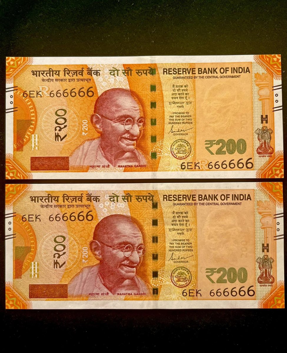 Rs 200 India Banknote TWIN SETS Super Solid 6EK 666666 Gem Unc Unique and Rare