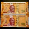 Rs 200 India Banknote TWIN SETS Super Solid 7ED 777777 Gem Unc Unique and Rare