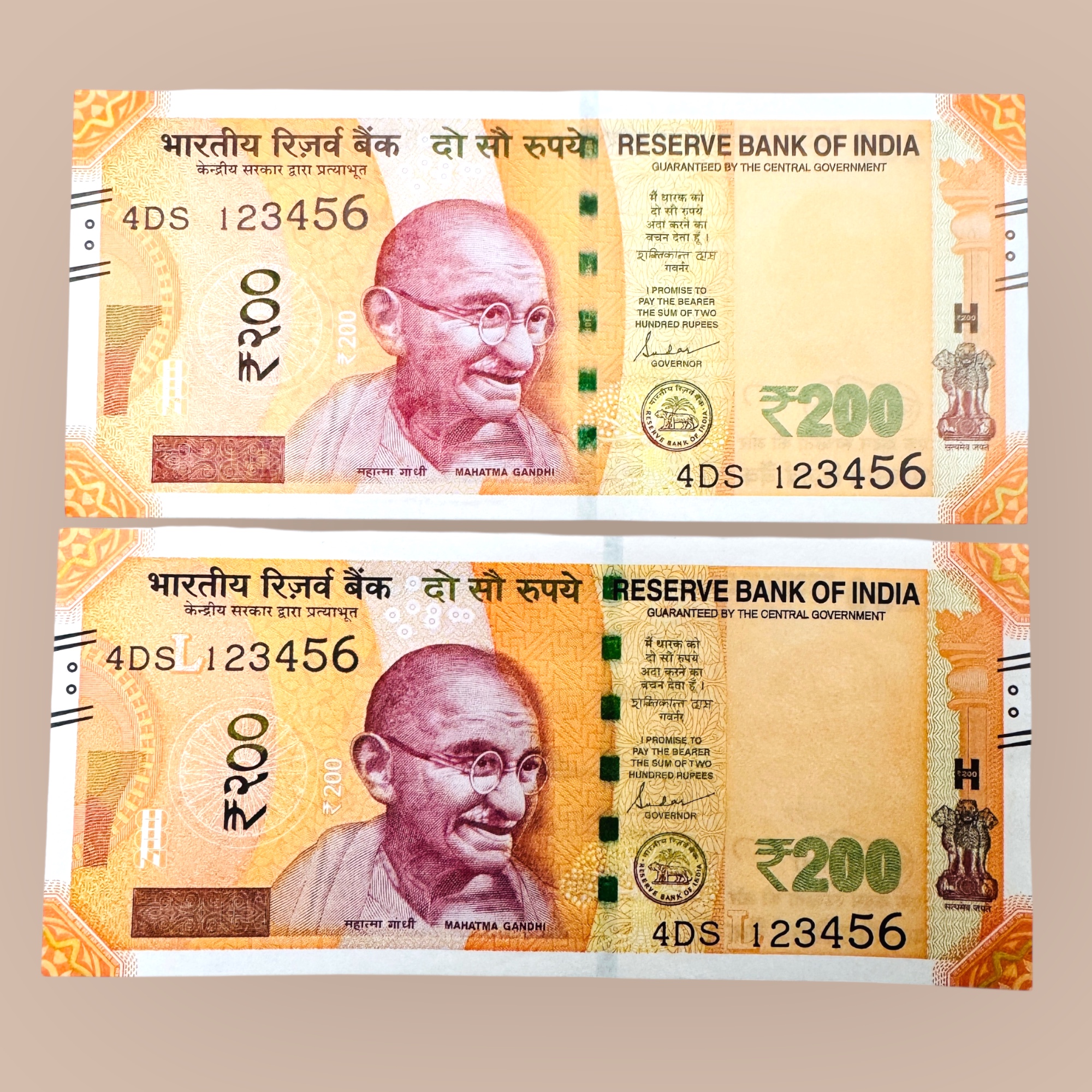 Rs 200 Twin Set Gem Unc Very Unique Bank Note Set Solid Running Lucky Number 4DS 123456 Unique and Rare
