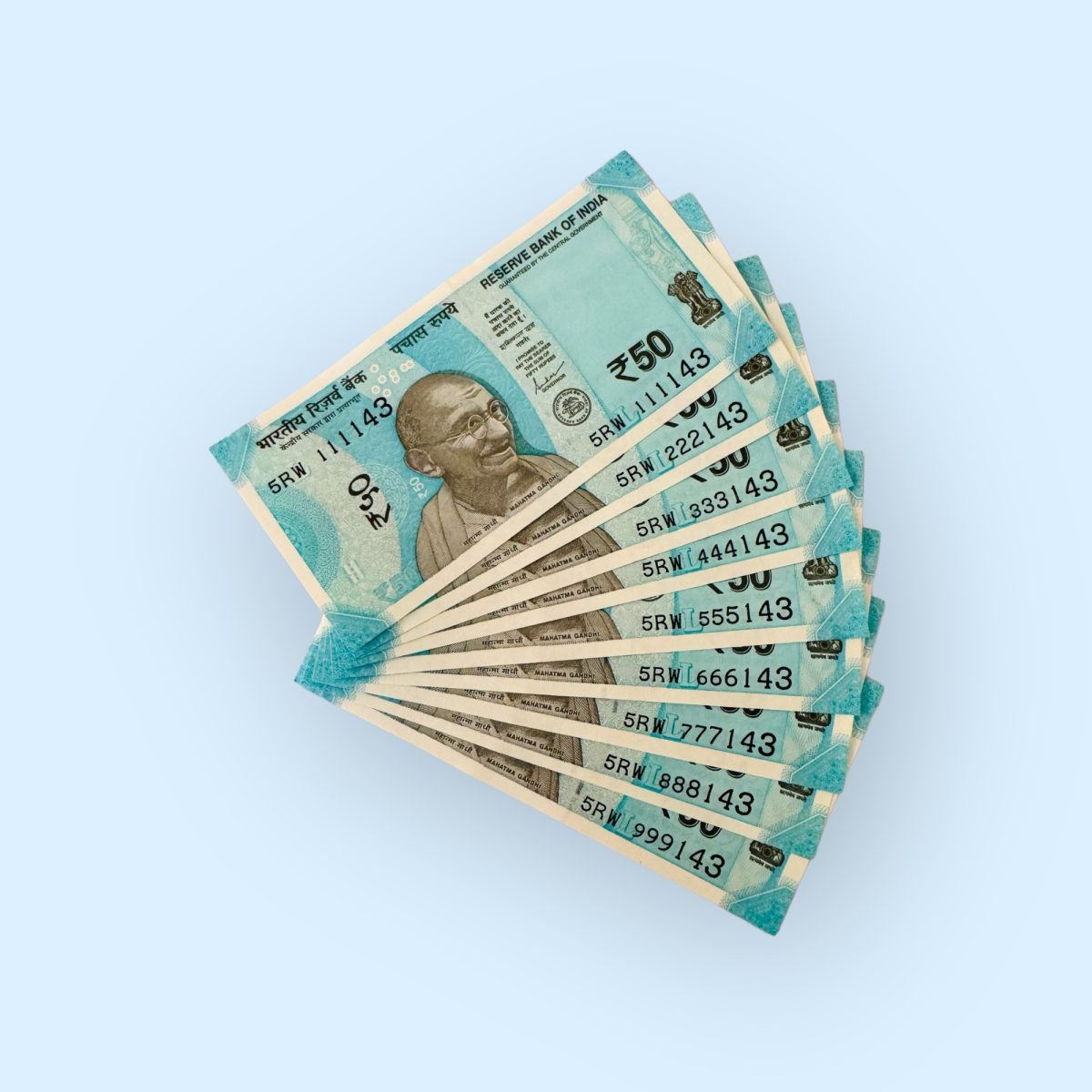 Rs 50/- India Banknote Solid Set Gem Unc 111143 to 999143 SAME PREFIX Latest Issue Unique and Rare