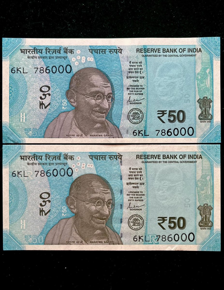 Rs 50 India Banknote Twin Set Holy Number 6KL 786000 Gem Unc Unique and Rare