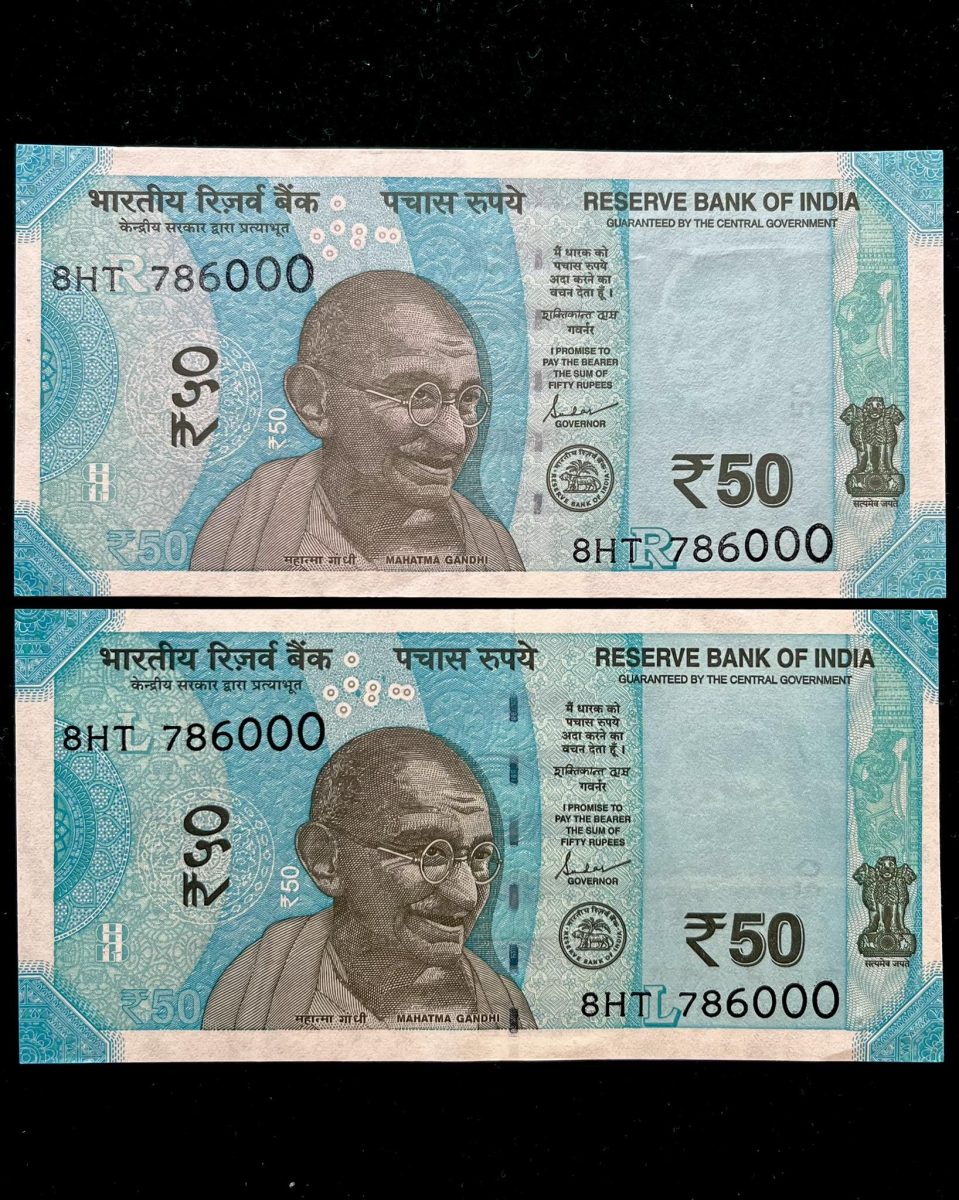 Rs 50 India Banknote Twin Set Holy Number 8HT 786000 Gem Unc Unique and Rare