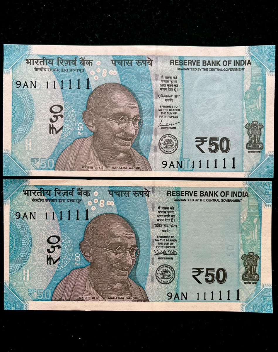Rs 50 India Banknote Twin Set SOLID Number 9AN 111111 Gem Unc Unique and Rare