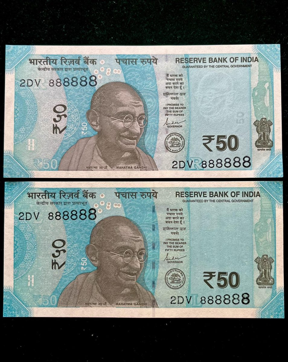 Discover a rare gem in the world of collectibles with the Rs 50 India Banknote Twin Set Super Solid 2DV 888888. This unique set features two pristine banknotes of the same denomination, both displaying the fancy number “888888,” making them a standout addition to any collection. Issued in 2019 and 2021, these banknotes hold a special place in economic history, showcasing the art of banknote collection. With a UNC (NEW) condition, these notes offer a glimpse into India’s currency heritage, attracting both novice and seasoned collectors alike. The meticulous detail and identical numbers on this twin pair note make it a coveted piece for enthusiasts looking to own a piece of rare and valuable currency. Add this remarkable set to your collection and delve into the fascinating world of paper money.