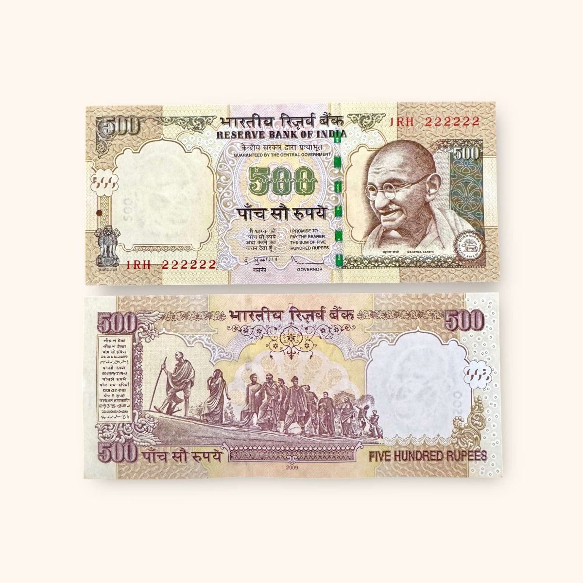 Rs 500 India Banknote Previous Issue Small Font Fancy Number 222222 Unique and Rare