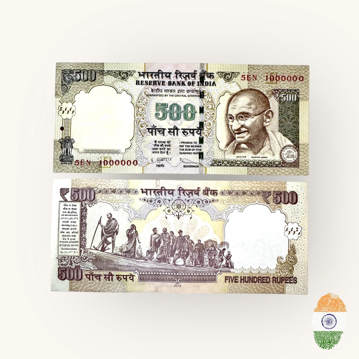 Rs 500 India Banknote Previous Issue Small Font Solid Number 1000000 UNC Unique and Rare
