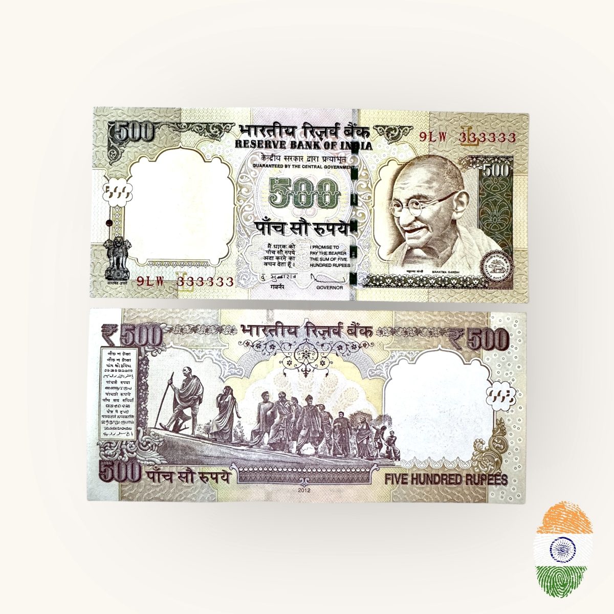 Rs 500 India Banknote Previous Issue Small Font Solid Number 333333 UNC Unique and Rare