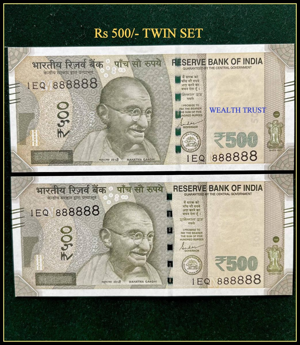 Rs 500 Twin Pair Gem Unc Very Unique Banknote Set Solid Number 1EQ 888888