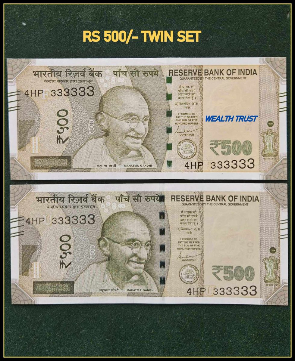 Rs 500 Twin Pair Gem Unc Very Unique Banknote Set Solid Number 4HP 333333