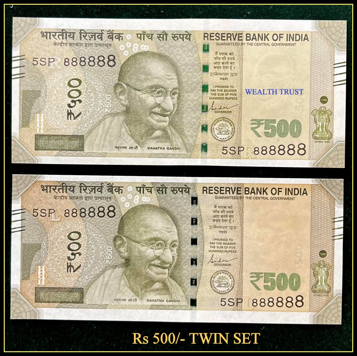 Rs 500 Twin Pair Gem Unc Very Unique Banknote Set Solid Number 5SP 888888