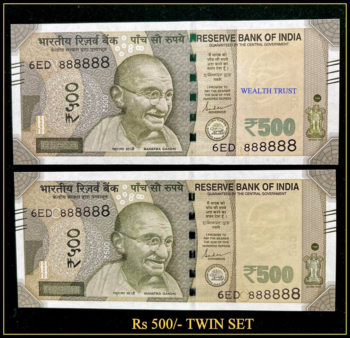 Rs 500 Twin Pair Gem Unc Very Unique Banknote Set Solid Number 6ED 888888