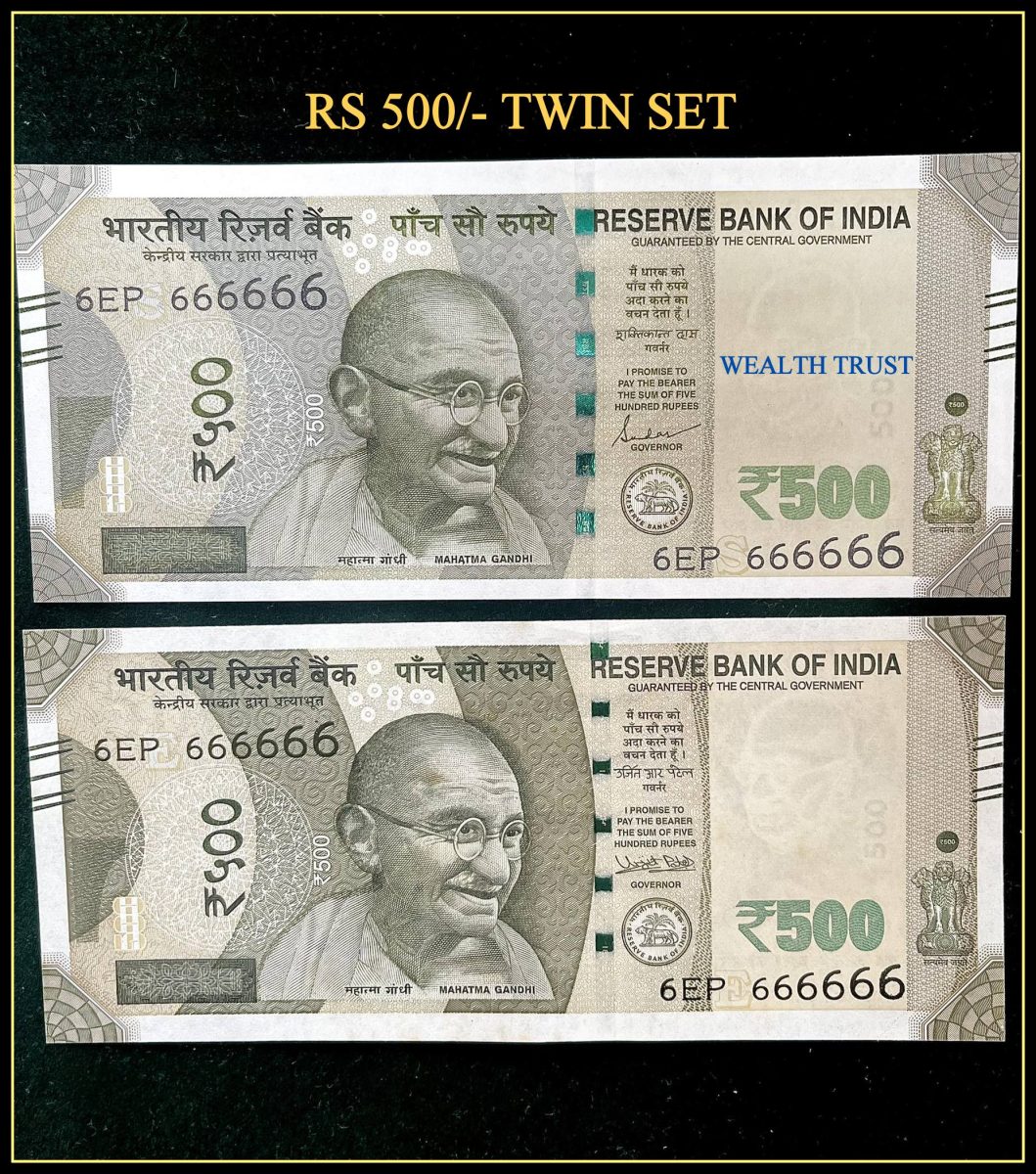 Rs 500 Twin Pair Gem Unc Very Unique Banknote Set SUPER Solid Number 6EP 666666