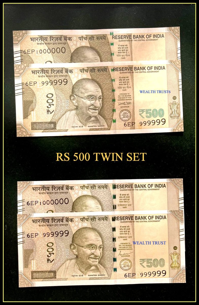Rs 500 Twin Pair Gem Unc Very Unique Banknote Set SUPER Solid Number 6EP 999999 & 1 MILLION