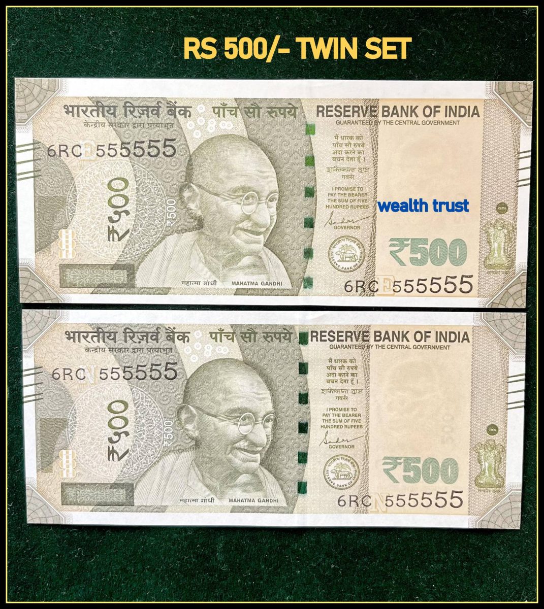 🏷️ Rare Rs 500 banknote set with solid number 6RC 555555