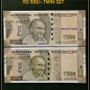 Rs 500 Twin Pair Gem Unc Very Unique Banknote Set SUPER Solid Number 2NH 222222