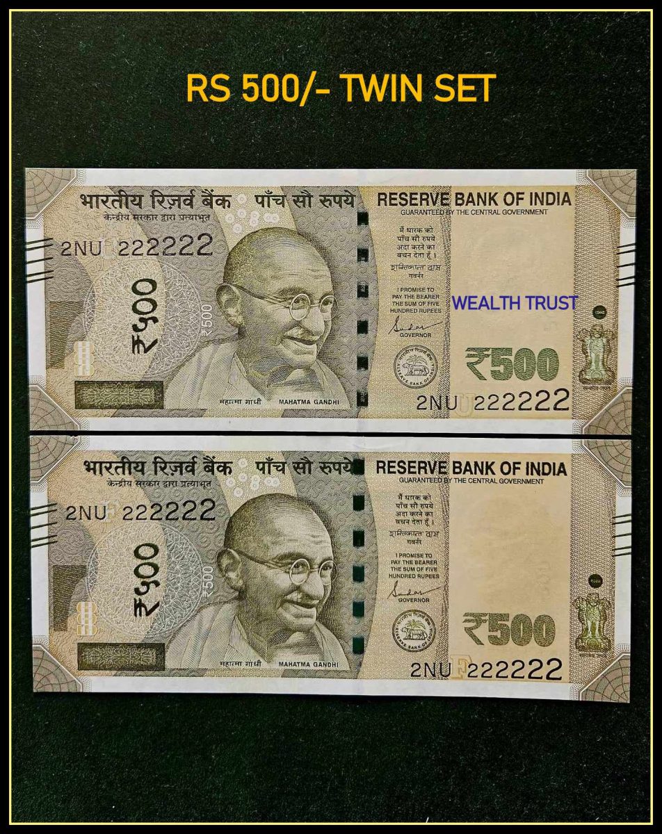 Rs 500 Twin Pair Gem Unc Very Unique Banknote Set SUPER Solid Number 2NU 222222