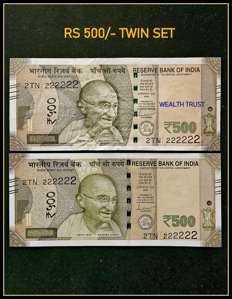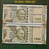 Rs 500 Twin Pair Gem Unc Very Unique Banknote Set SUPER Solid Number 2TN 222222