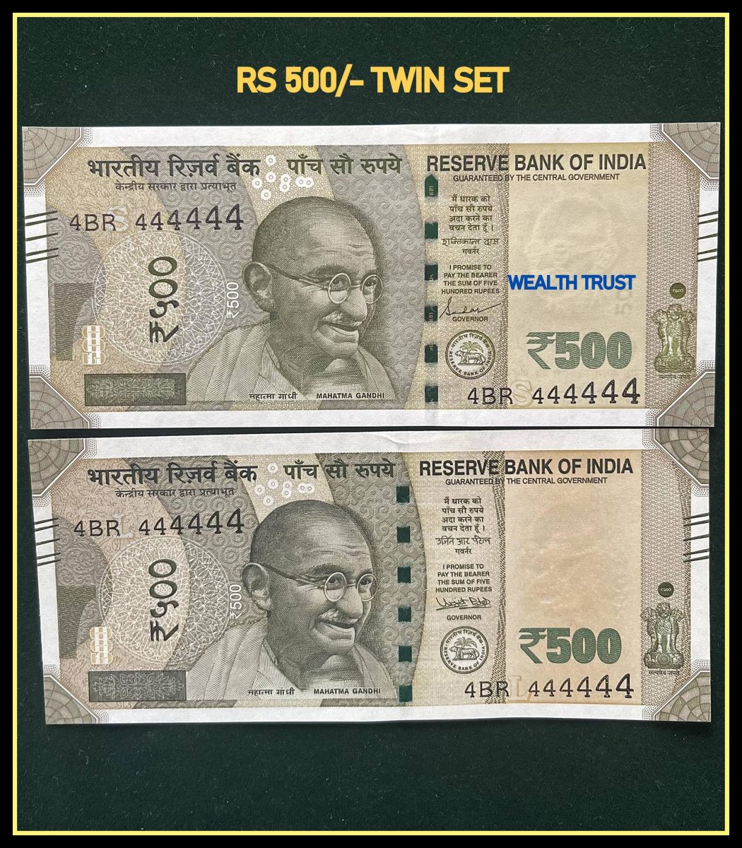 Rs 500 Twin Pair Gem Unc Very Unique Banknote Set SUPER Solid Number 4BR 444444