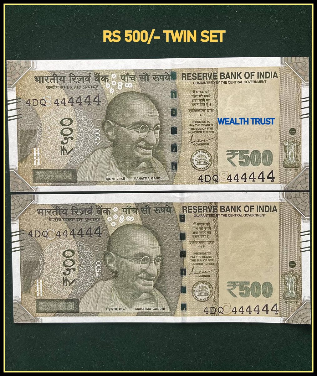 Rs 500 Twin Pair Gem Unc Very Unique Banknote Set SUPER Solid Number 4DQ 444444
