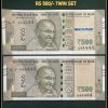 Rs 500 Twin Pair Gem Unc Very Unique Banknote Set SUPER Solid Number 4PT 444444
