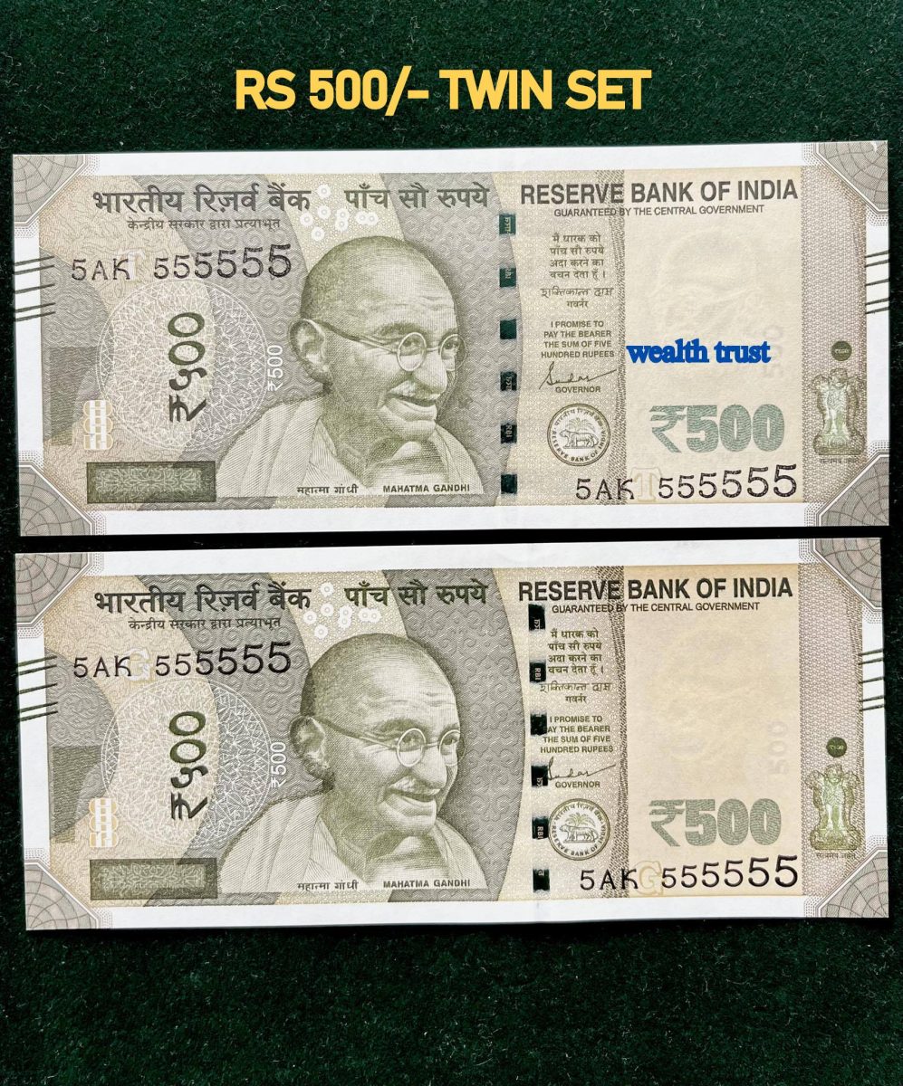 Rs 500 Twin Pair Gem Unc Very Unique Banknote Set SUPER Solid Number AK 555555