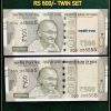 Rs 500 Twin Pair Gem Unc Very Unique Banknote Set SUPER Solid Number 5CB 555555