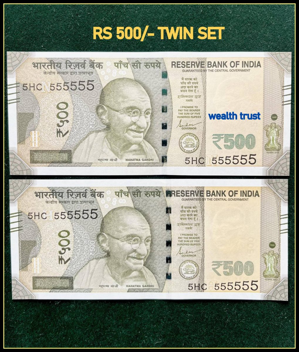 Rs 500 Twin Pair Gem Unc Very Unique Banknote Set SUPER Solid Number HC 555555
