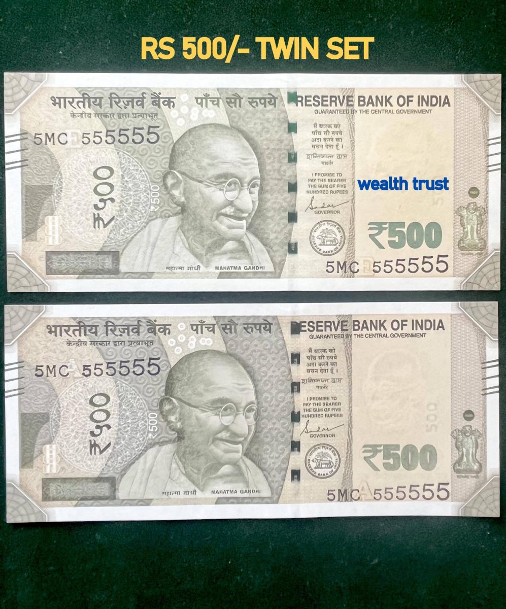 Rs 500 Twin Pair Gem Unc Very Unique Banknote Set SUPER Solid Number 5MC 555555