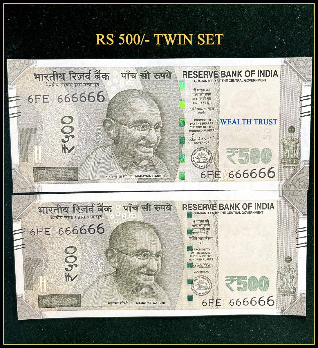 Rs 500 Twin Pair Gem Unc Very Unique Banknote Set SUPER Solid Number 6FE 666666
