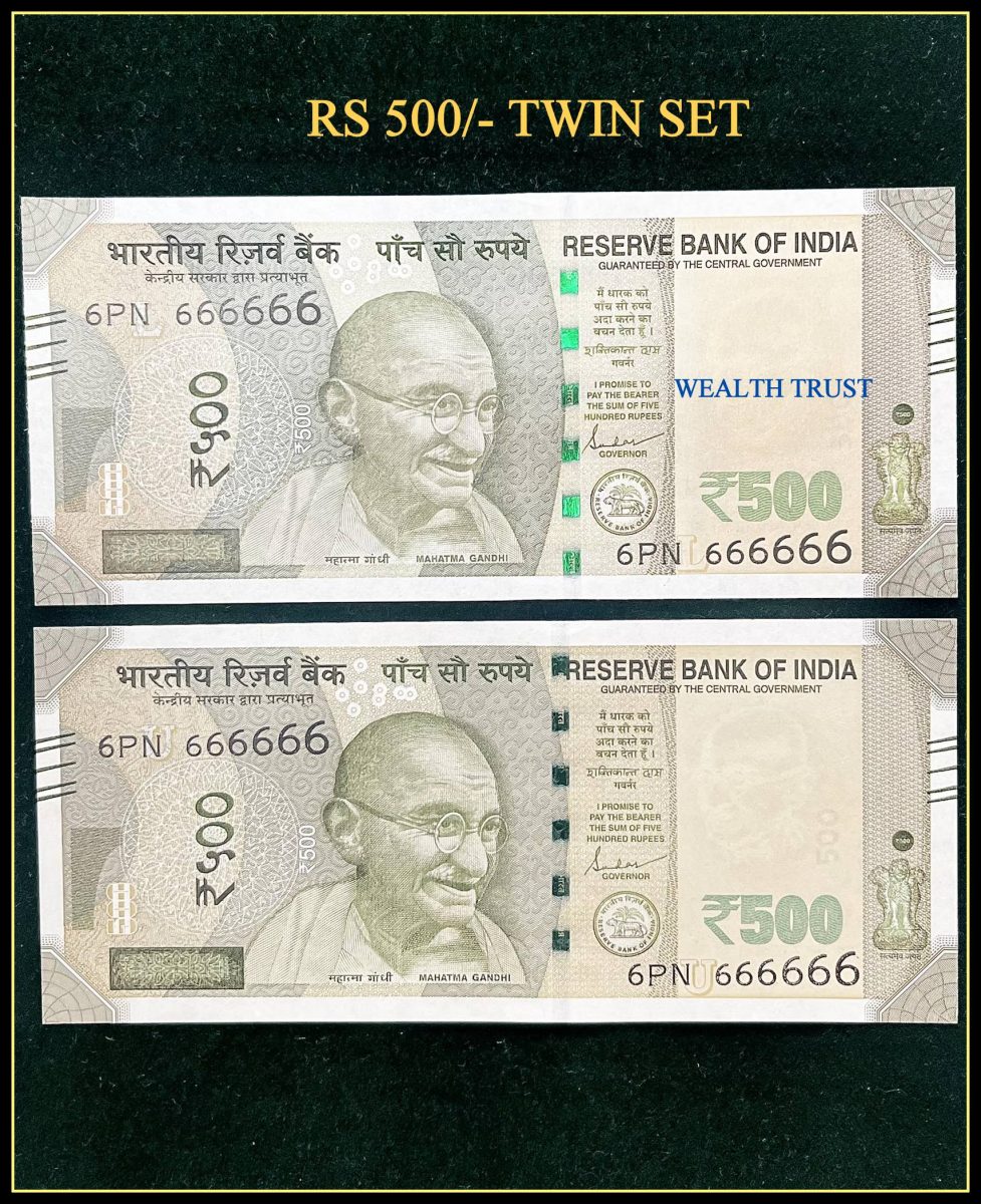 Rs 500 Twin Pair Gem Unc Very Unique Banknote Set SUPER Solid Number 6PN 666666