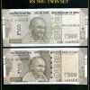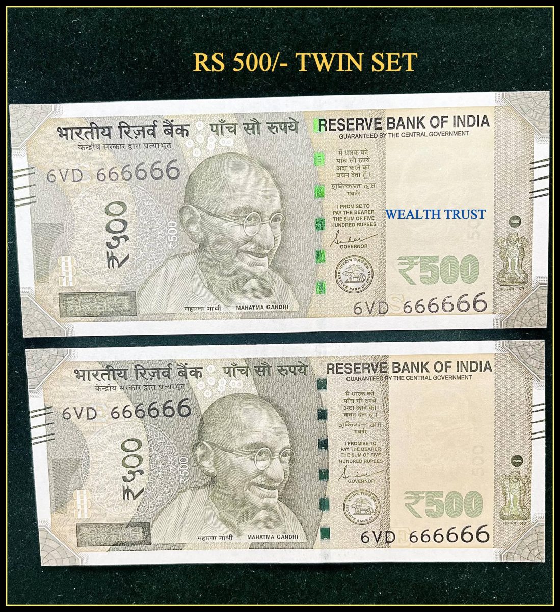 Rs 500 Twin Pair Gem Unc Very Unique Banknote Set SUPER Solid Number 6VD 666666