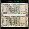 Rs 500 Twin Pair Gem Unc Very Unique Banknote Set SUPER Solid Number BA 777777
