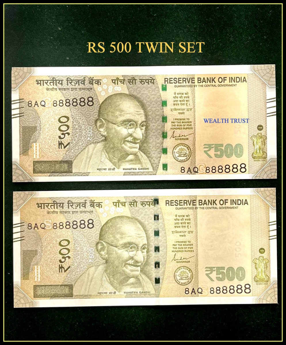 Rs 500 Twin Pair Gem Unc Very Unique Banknote Set SUPER Solid Number 8AQ 888888
