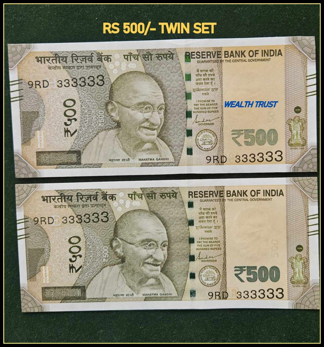 Rs 500 Twin Pair Gem Unc Very Unique Banknote Set SUPER Solid Number 9RD 333333