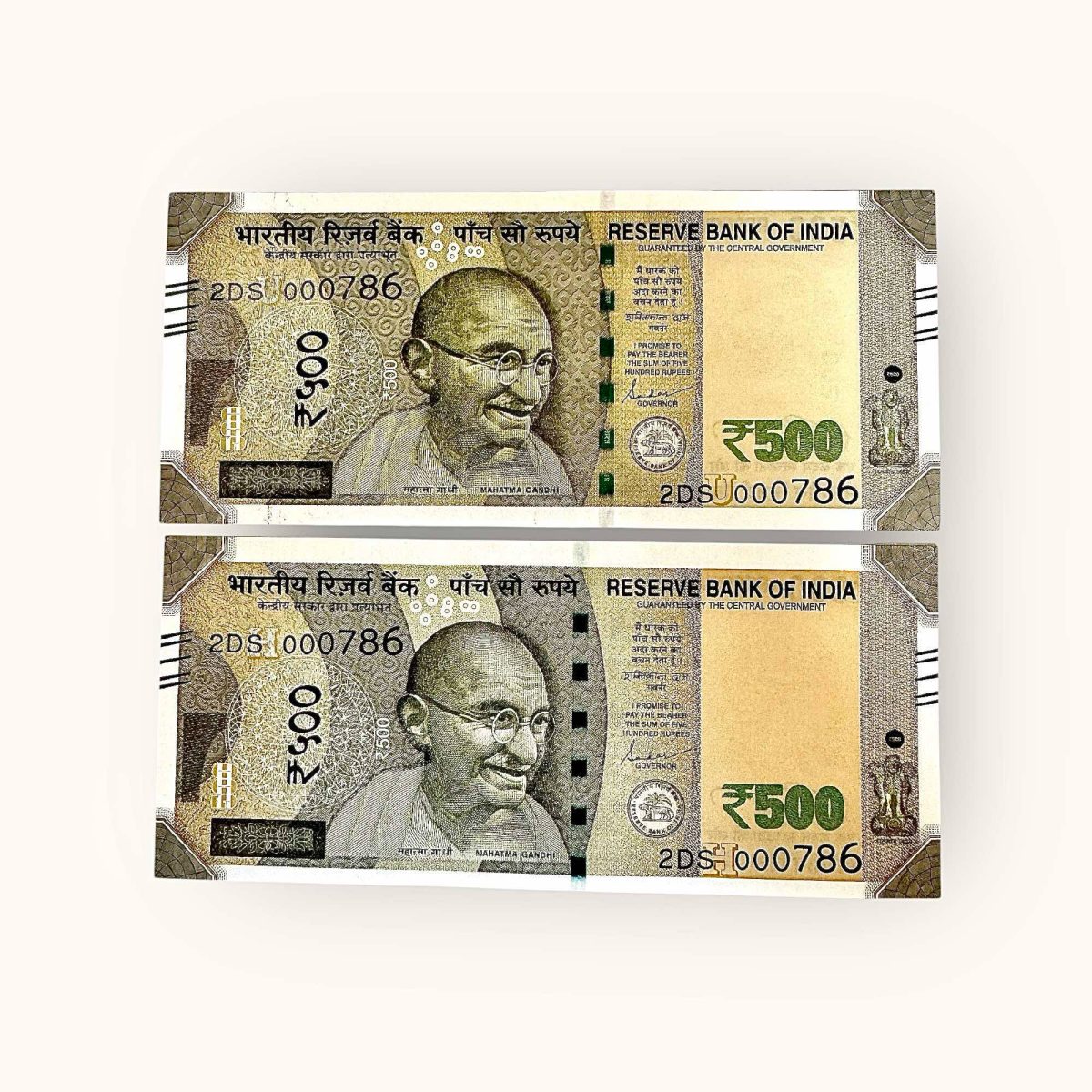 Rs 500 TWIN SET Gem Unc Very Unique Bank Note Set Solid Holy Number 2DS 000786