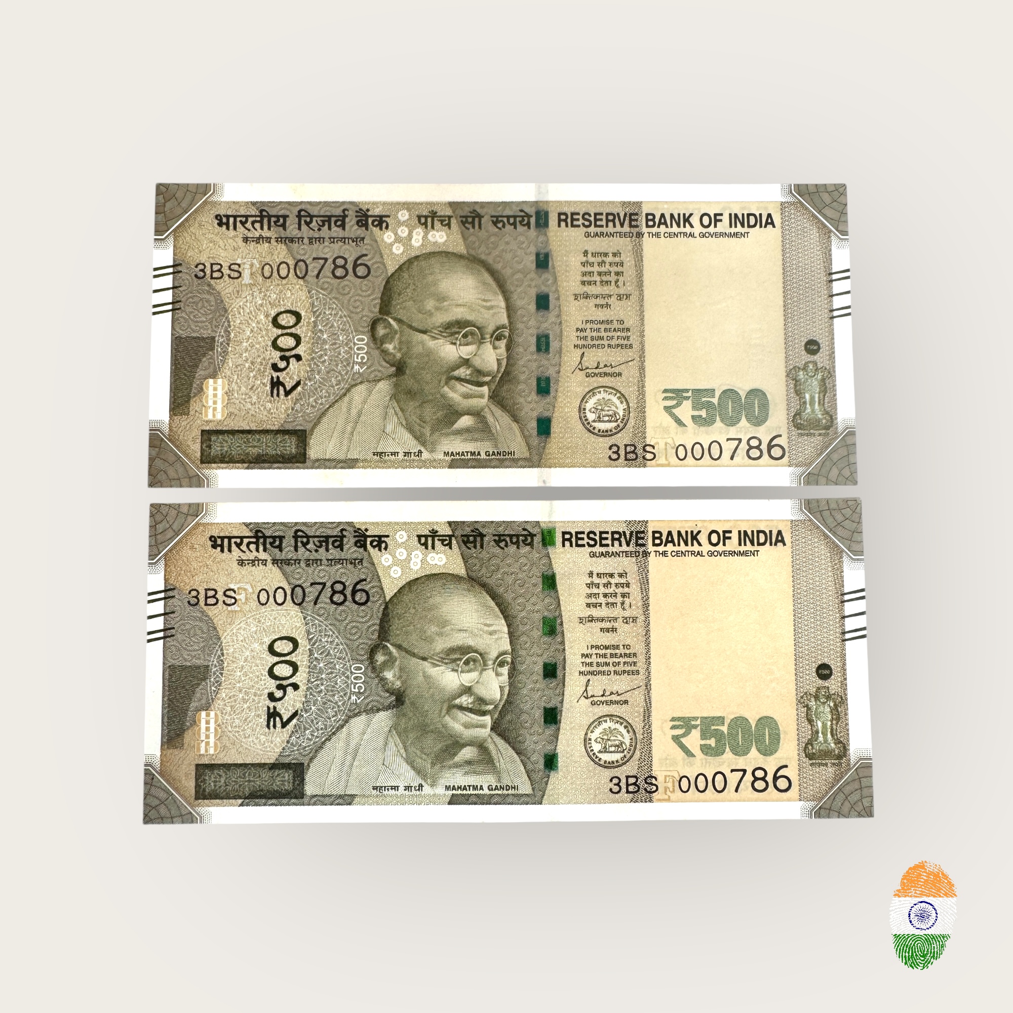 Rs 500 Twin Set Gem Unc Very Unique Bank Note Set Solid Holy Number 3BS 000786