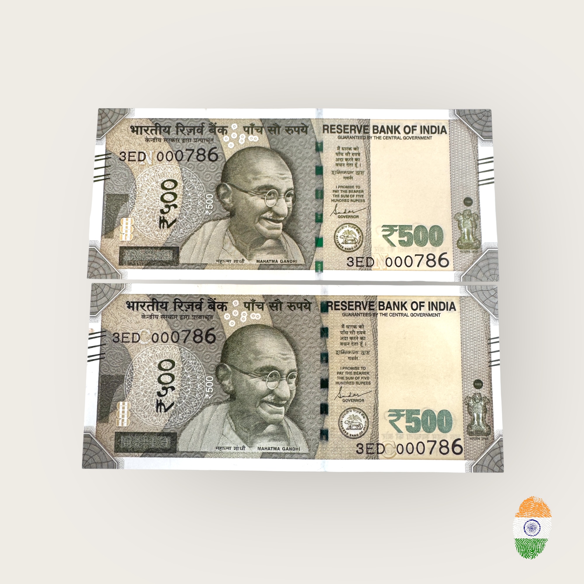 Rs 500 Twin Set Gem Unc Very Unique Bank Note Set Solid Holy Number 3ED 000786