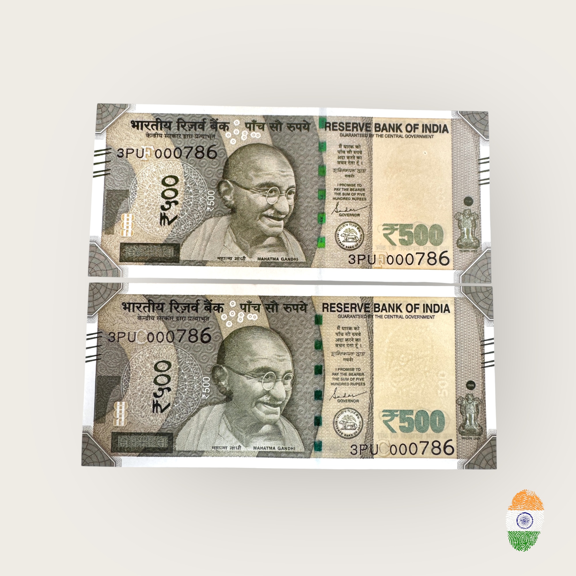 Rs 500 Twin Set Gem Unc Very Unique Bank Note Set Solid Holy Number 3PU 000786