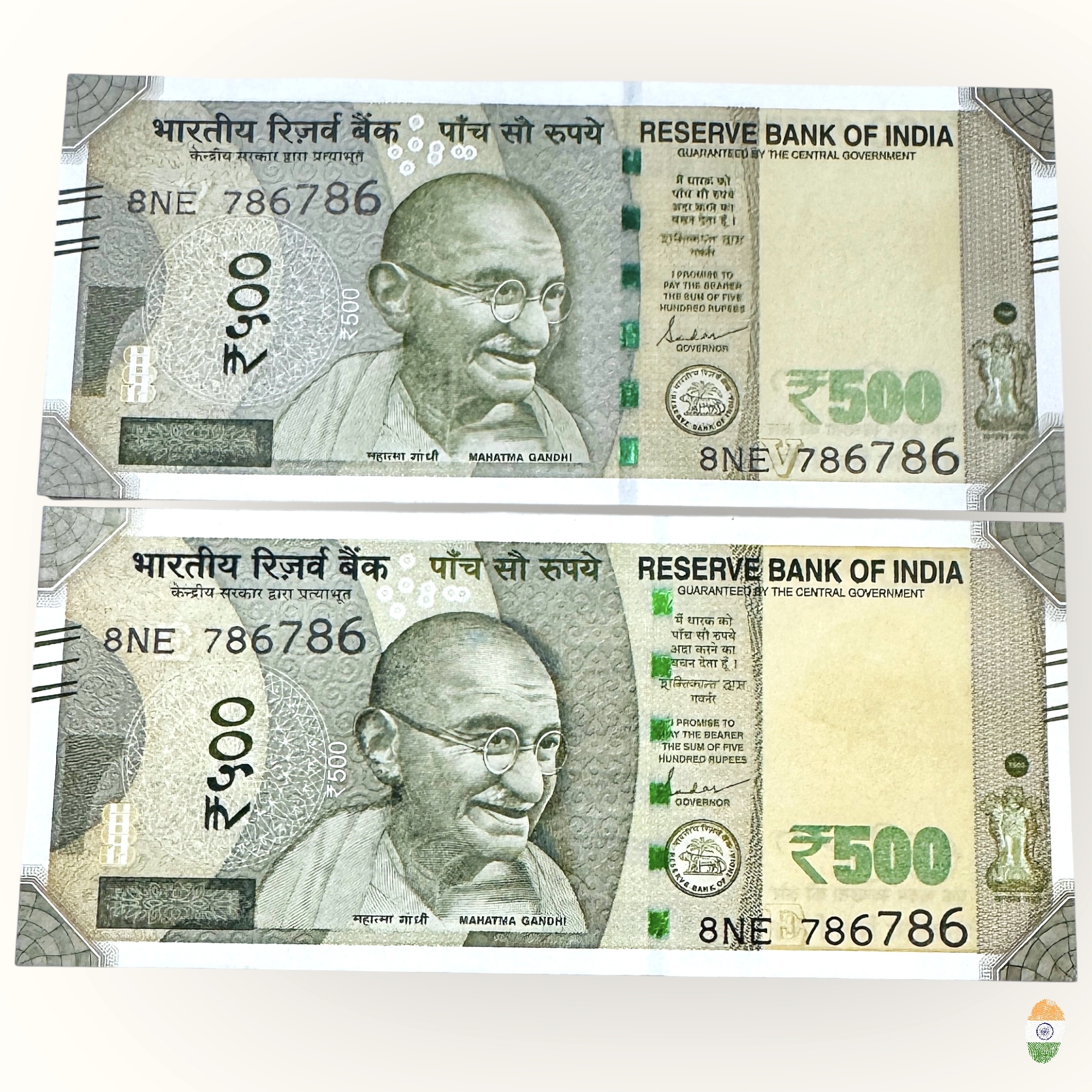 Rs 500 Twin Holy Number India Banknote Gem Unc Very Unique Solid Holy Number 8NE 786786 Unique and Rare