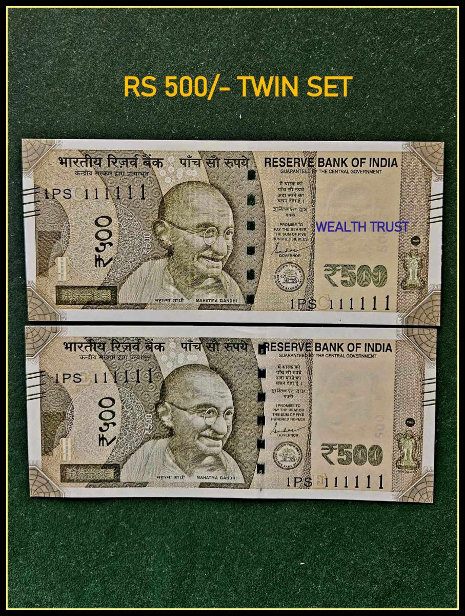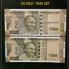 Rs 500 TWIN SET Gem Unc Very Unique Bank Note Set SUPER Solid Number 1PS 111111
