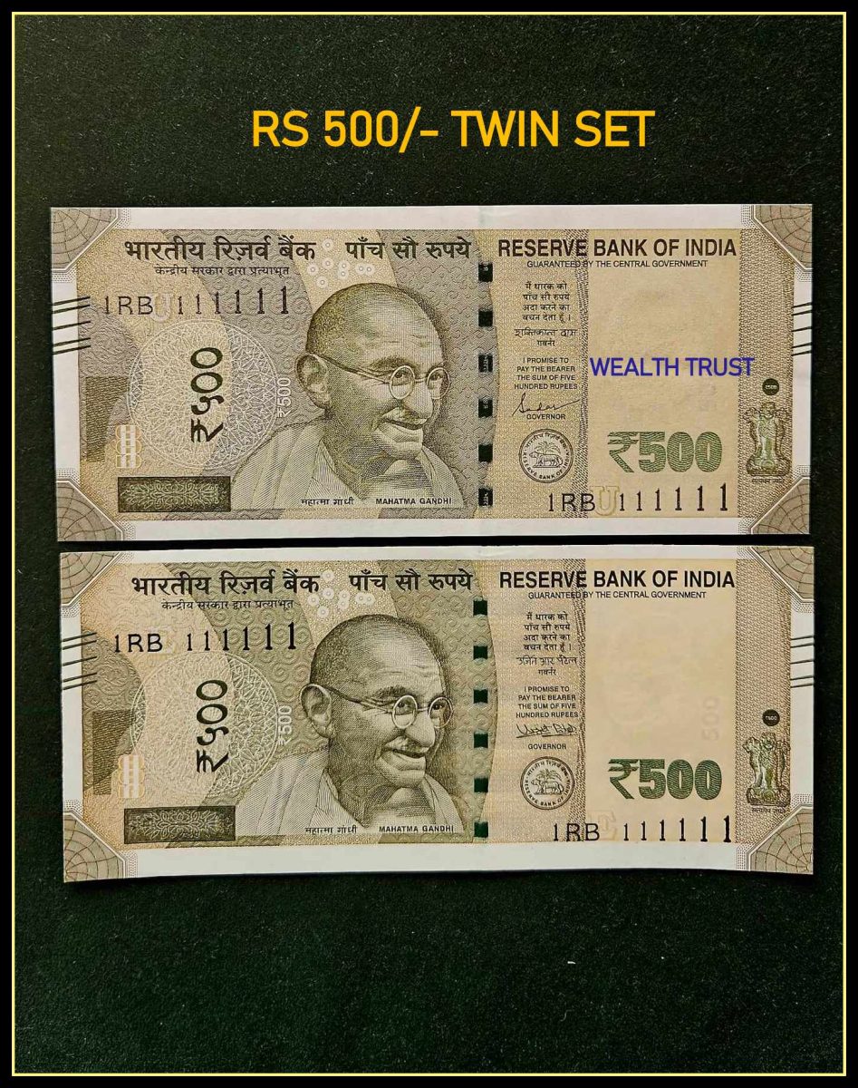 Rs 500 TWIN SET Gem Unc Very Unique Bank Note Set SUPER Solid Number 1RB 111111