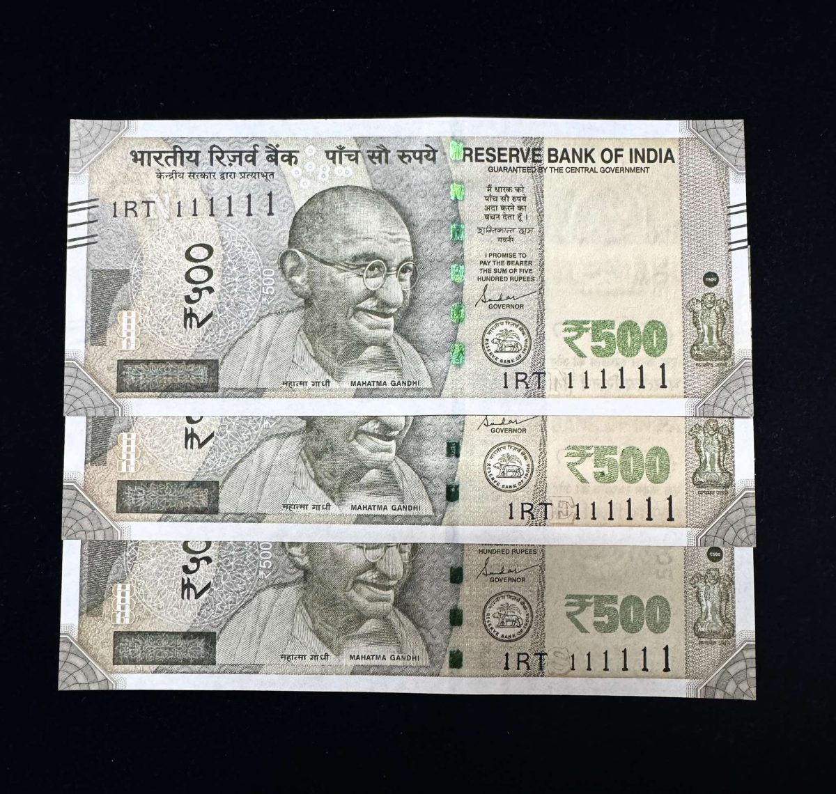 ✅ Rare Rs 500 banknote set with solid serial number 1RT 111111