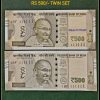 Rs 500 TWIN SET Gem Unc Very Unique Bank Note Set SUPER Solid Number 1WQ 111111
