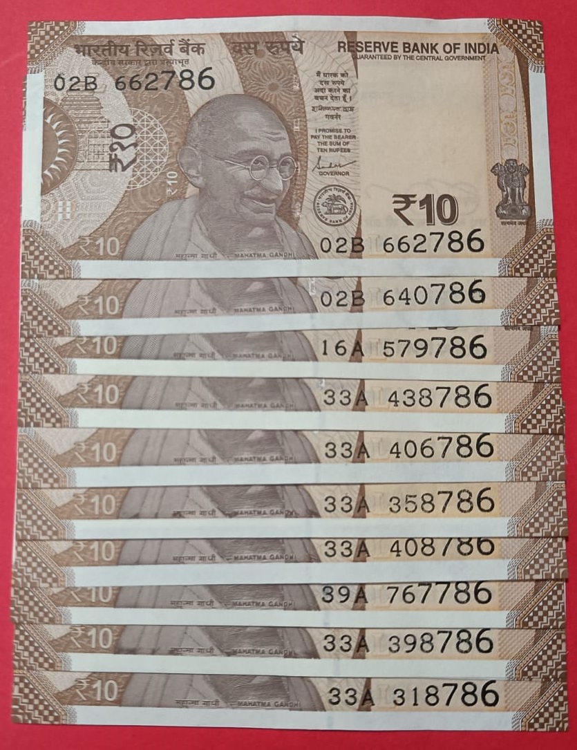 10 Rs Denomination is Rare for ending with 786 GEM UNC Condition Notes. Mix Years