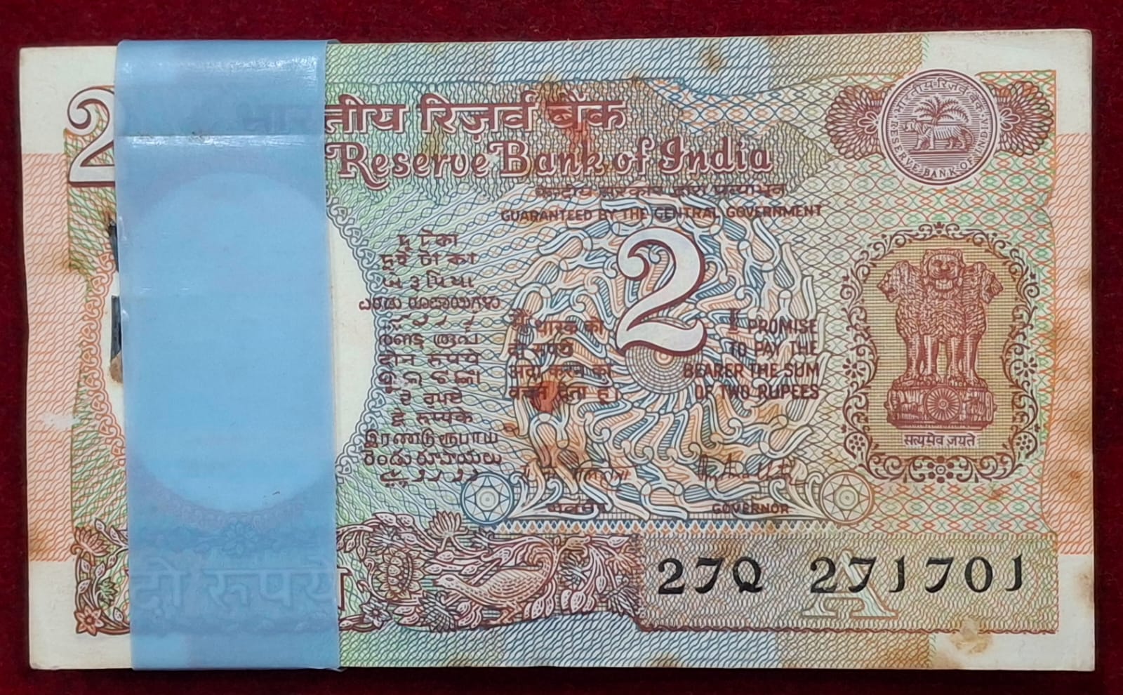 2 RUPEES SATELLITE GOVERNOR R.N.MALHOTRA RARE (100 NOTE) SERIAL PACKET WITH FANCY NUMBER ENDING 786