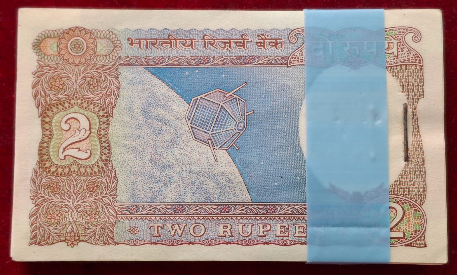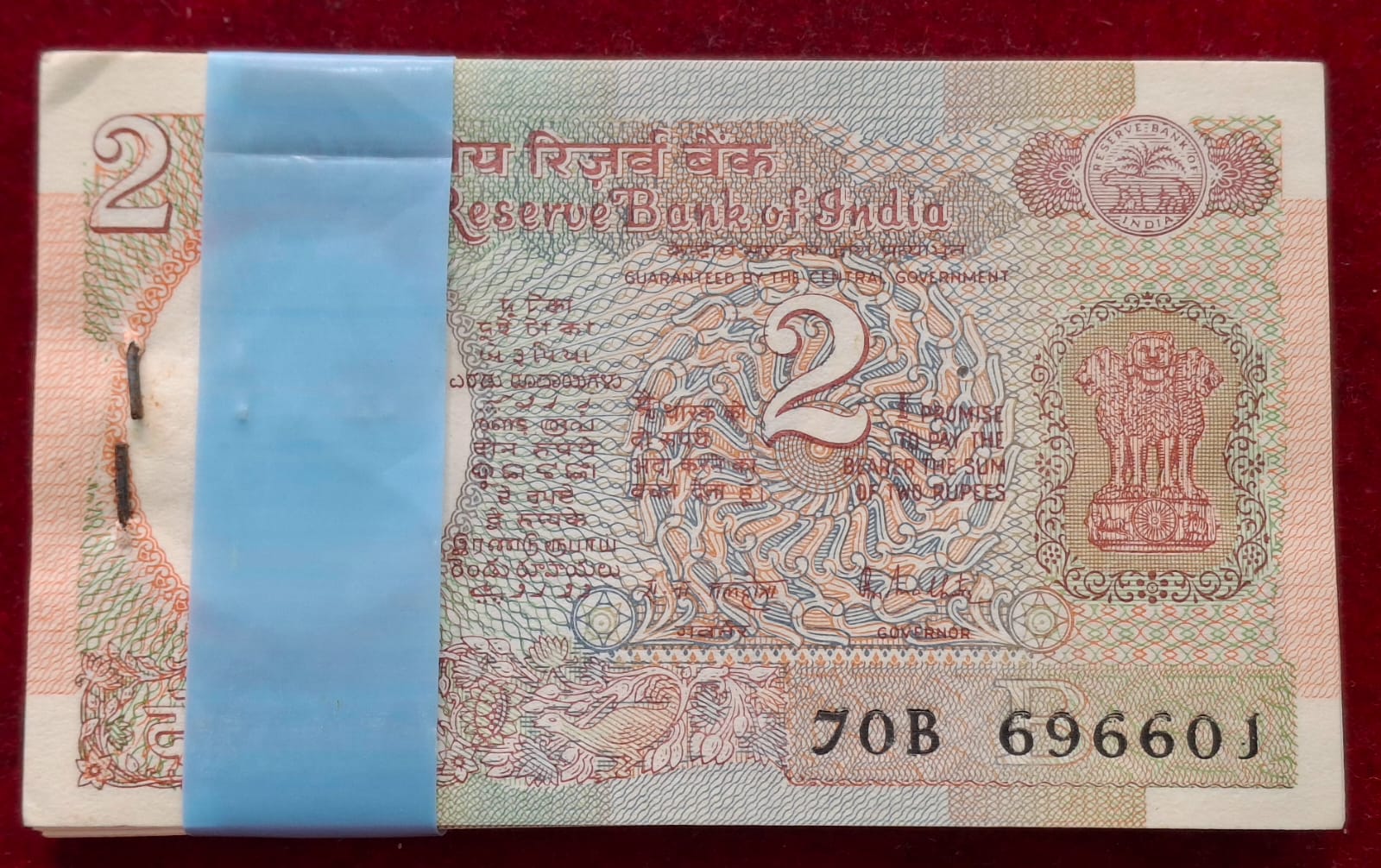 2 RUPEES SATELLITE GOVERNOR R.N.MALHOTRA RARE SERIAL PACKET WITH DOUBLING NUMBER 696696
