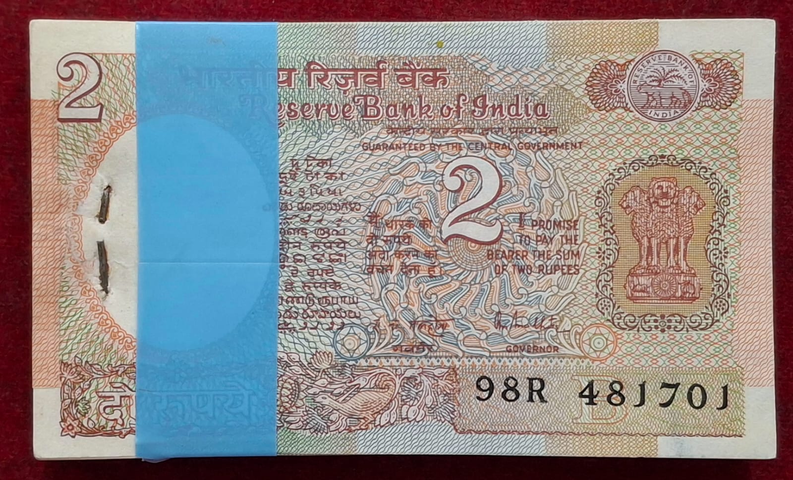 2 RUPEES SATELLITE GOVERNOR R.N.MALHOTRA RARE SERIAL PACKET WITH FANCY NUMBER ENDING 786