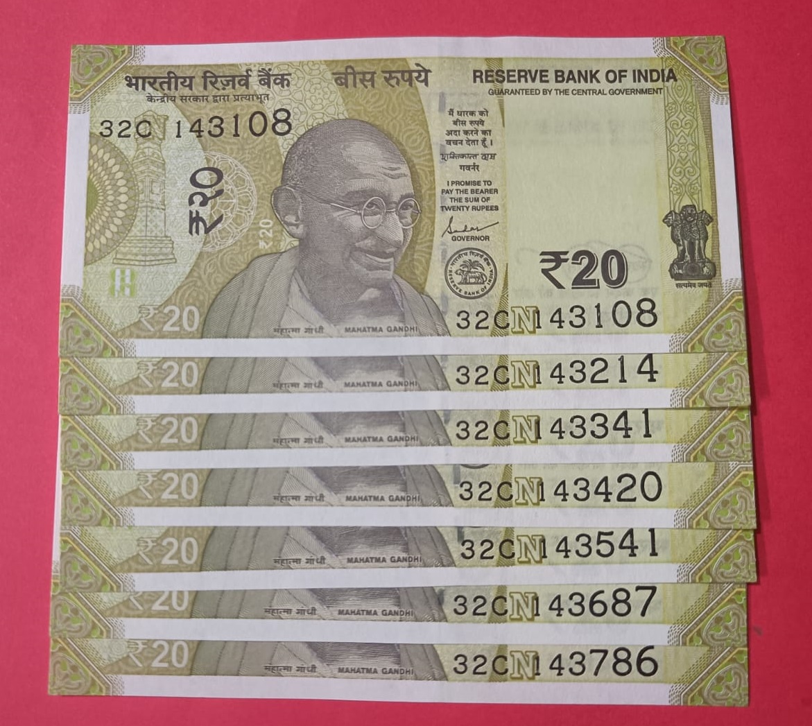 ✨ Rare 20 Rupee notes set with unique prefix