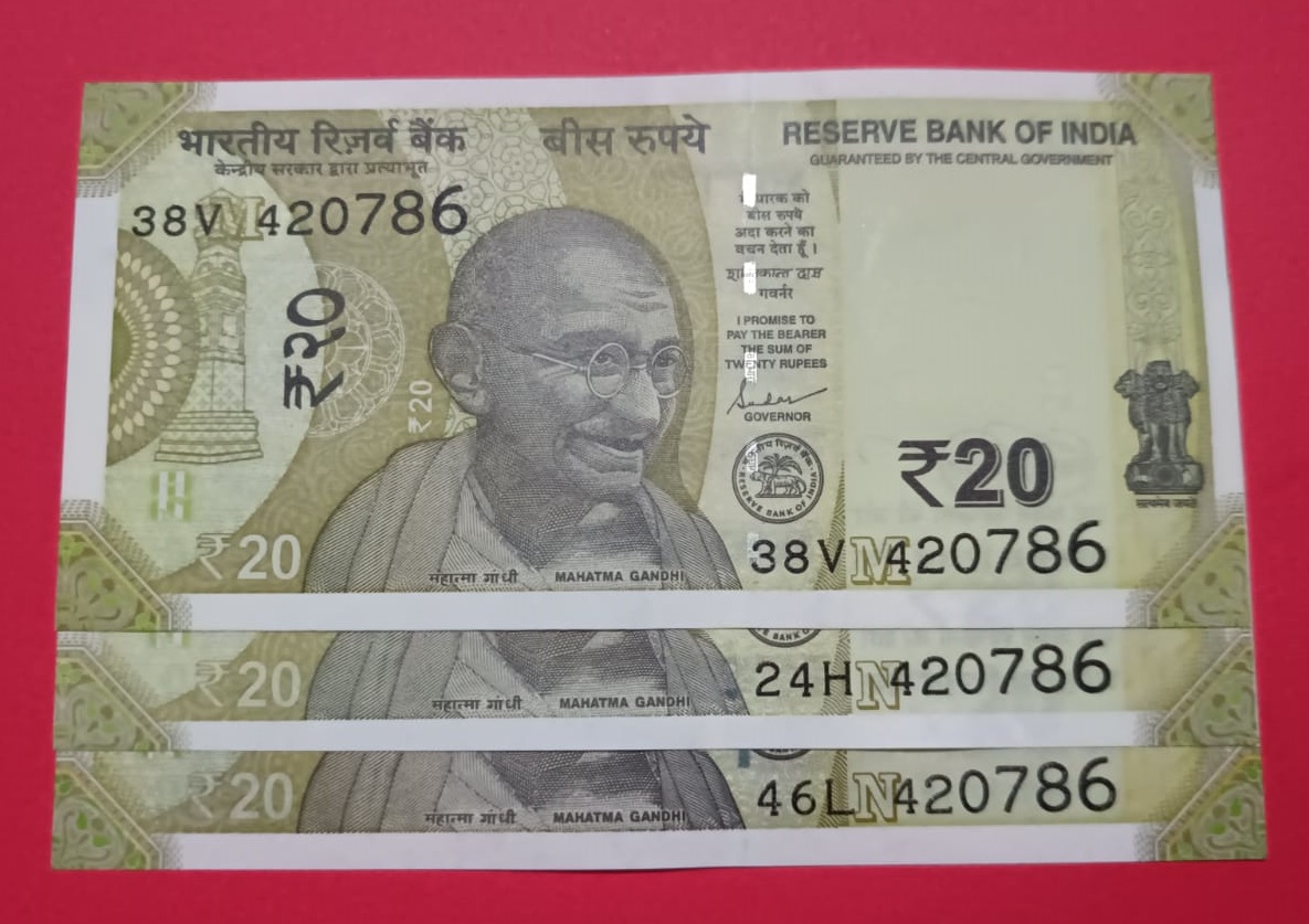 20 Rs 420786 Fancy Number GEM UNC SEt of 3 Notes