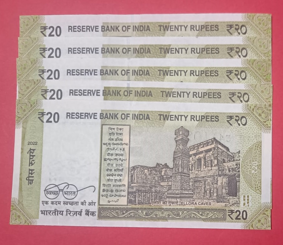 20 Rs Fancy Number Set of 5 Notes GEM UNC Condition